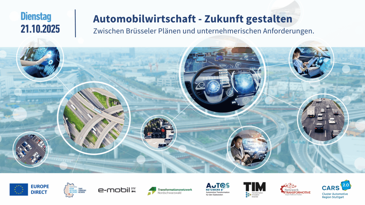 Wie kann Europas Autoindustrie den tiefgreifenden Wandel meistern – und was bedeutet das für die industriestarken Regionen im Südwesten? Diese Fragen standen im Mittelpunkt eines digitalen Webinars des Transformationsnetzwerks Ostwürttemberg. Die Veranstaltung entstand in Kooperation mit e-mobil BW und den baden-württembergischen EUROPE DIRECT Zentren sowie den fünf weiteren regionalen Transformationsnetzwerken in Baden-Württemberg. Vertreter aus Politik, Wirtschaft und Wissenschaft diskutierten über Strategien, Chancen und Herausforderungen der industriellen Transformation.